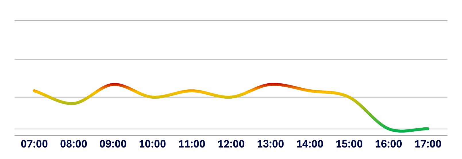 Below is a graphical representation of the average traffic flow from Monday to Friday at Medistri CH. The curve illustrates the busiest and easiest moments to charge or discharge your goods based on historical data.